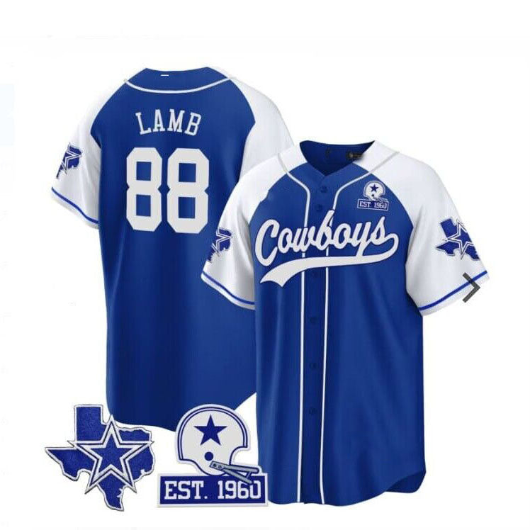 Cowboys #88 CeeDee Lamb Blue White Stitched Baseball Jersey